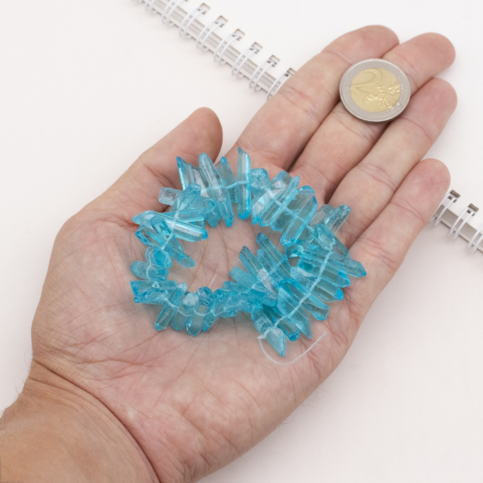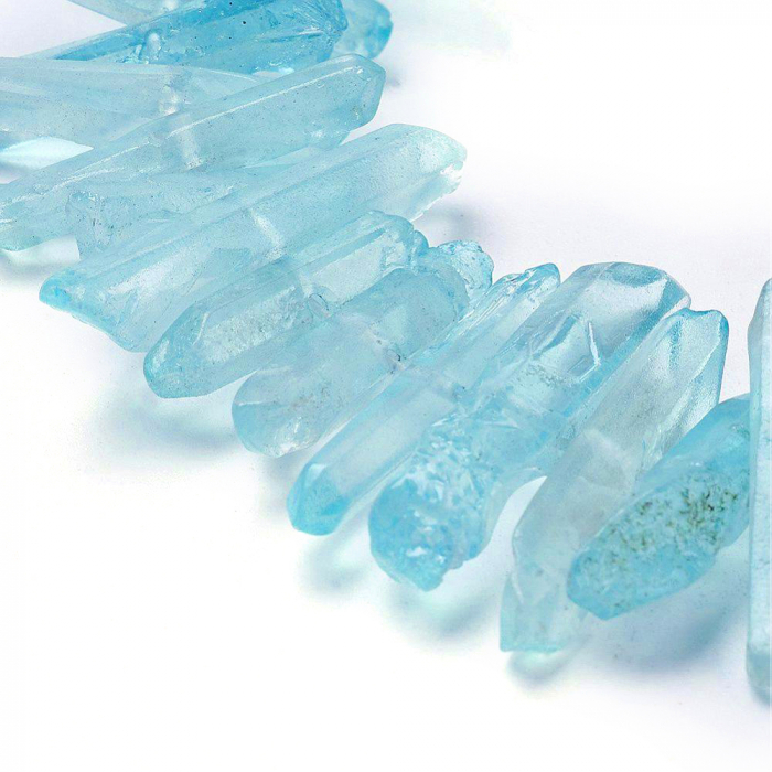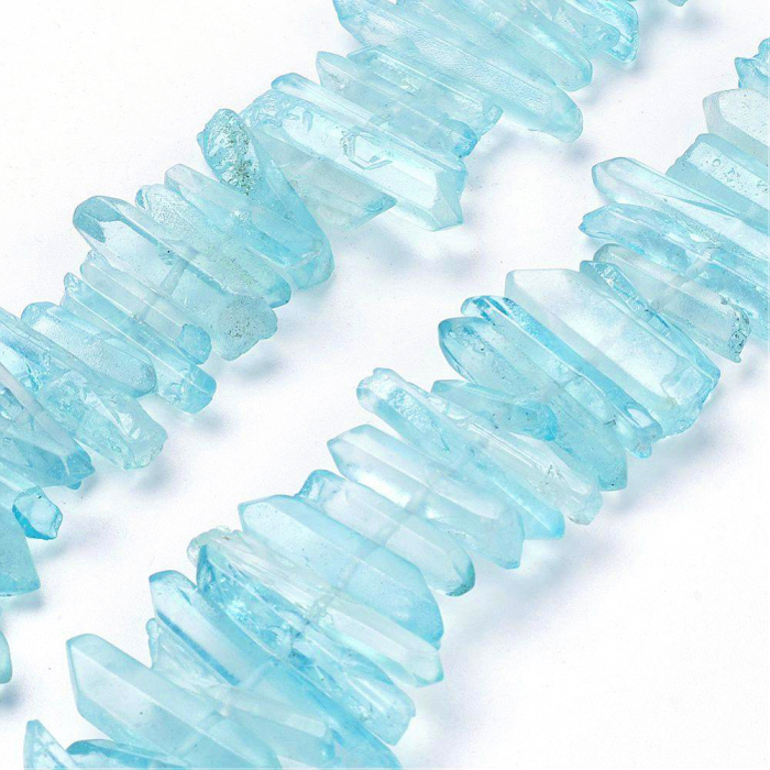 ✔Gwarancja jakości ✔Szybka dostawa ✔Wygodne zamawianie ★ Koraliki Naturalny Kryształ Górski, Bryłki, Barwiony, Kolor: Cyan, 15-30x4-8x4-7mm, około 18cm/nić (13WB13940) w MixForm ➨ Masz czas na zakup w korzystnej cenie!