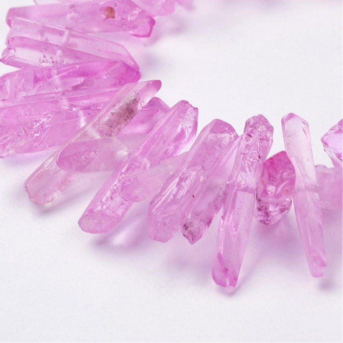 ✔Gwarancja jakości ✔Szybka dostawa ✔Wygodne zamawianie ★ Koraliki Naturalny Kryształ Górski, Bryłki, Barwiony, Kolor: Różowy, 15-30x4-8x4-7mm, około 18cm/nić (13WB13942) w MixForm ➨ Masz czas na zakup w korzystnej cenie!