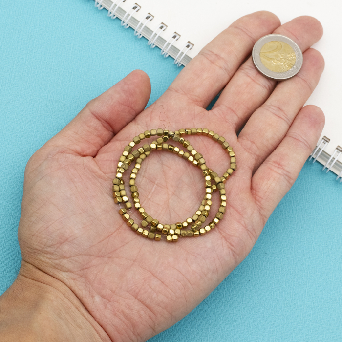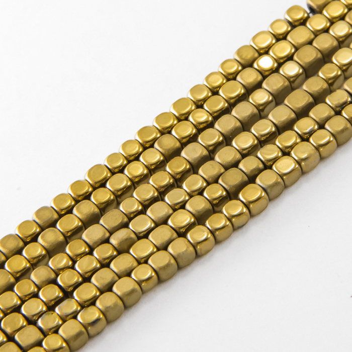 ✔Gwarancja jakości ✔Szybka dostawa ✔Wygodne zamawianie ★ Koraliki Syntetyczne Hematyt, Niemagnetyczne, Kostka, Złoty, 3x3x3mm, około 135szt/43cm/sznur (13WB11304) w MixForm ➨ Masz czas na zakup w korzystnej cenie!
