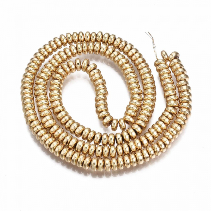 Koraliki Syntetyczny Hematyt, Niemagnetyczne, Rondelle, Jasnozłote, 4x2mm, około 175szt/38cm/sznur (13WB11307)
