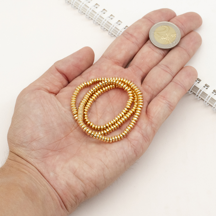 ✔Gwarancja jakości ✔Szybka dostawa ✔Wygodne zamawianie ★ Koraliki Syntetyczny Hematyt, Niemagnetyczne, Rondelle, Jasnozłote, 4x2mm, około 175szt/38cm/sznur (13WB11307) w MixForm ➨ Masz czas na zakup w korzystnej cenie!