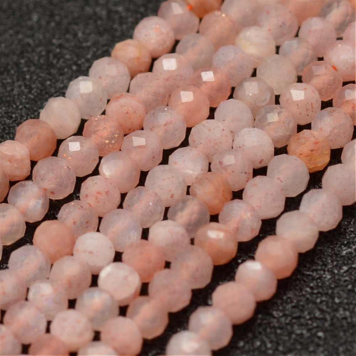 Koraliki Naturalny Kamień Słoneczny, Fasetowany, Okrągłe, Na sznuri, Kolor: Beżowy, Kraj pochodzenia kamienia to Tanzania.