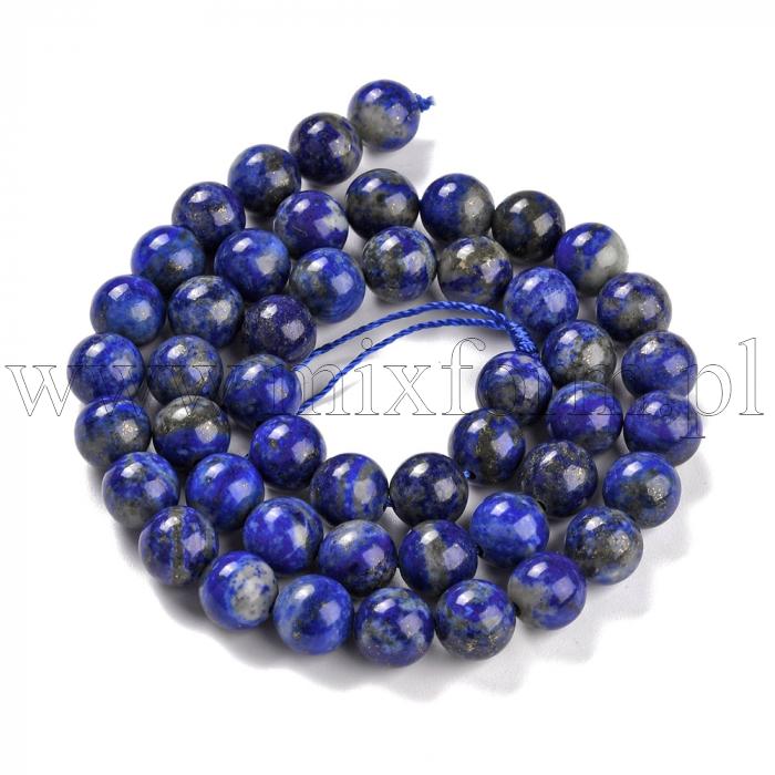 Koraliki Naturalny Lapis Lazuli, Okrągłe, na nitkach, Niebarwiony, Kraj pochodzenia - Afganistan