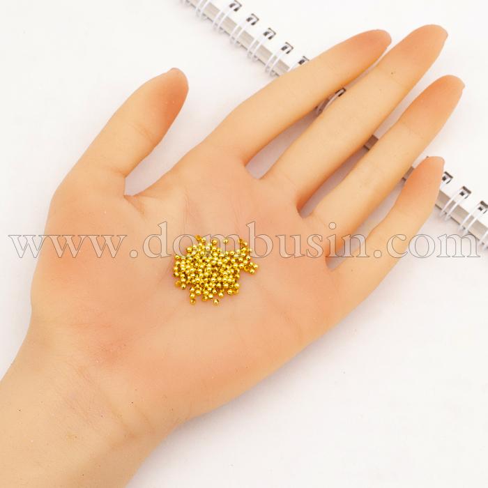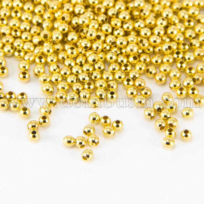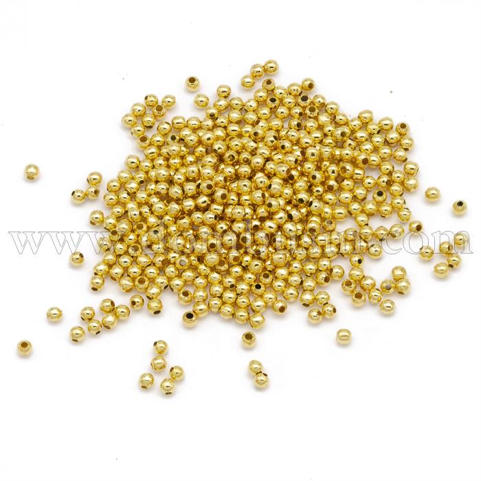 Koraliki Dystansowe Żelazne Okrągłe, Złote, 2x2mm, Otwór 1mm, około 1050szt/20g, (14WB6784)