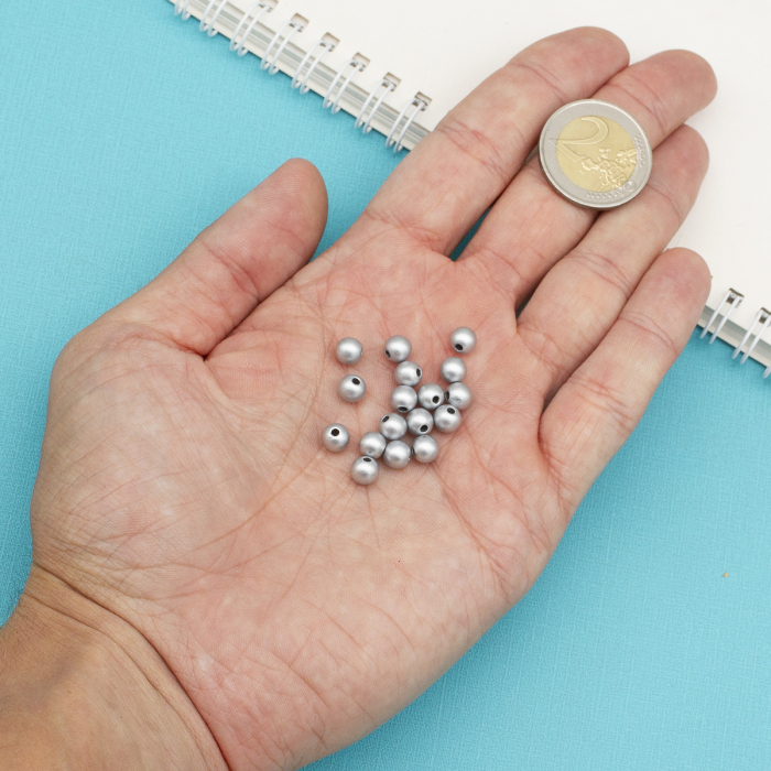 ✔Gwarancja jakości ✔Szybka dostawa ✔Wygodne zamawianie ★ Koraliki Akrylowe Lakierowane, Matowe Styl, Okrągłe, Średnica: 6mm, Kolor: Srebrny, około 210szt/25g (13WB28897) w MixForm ➨ Masz czas na zakup w korzystnej cenie!