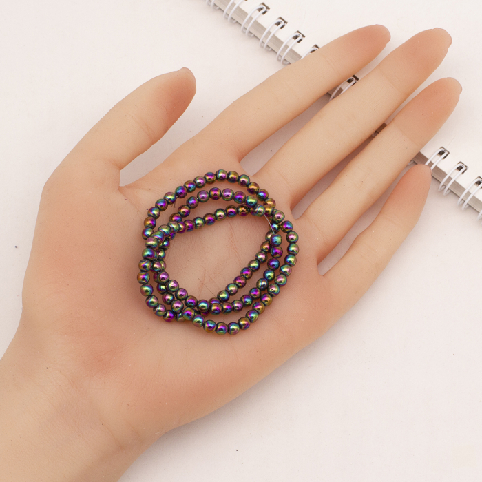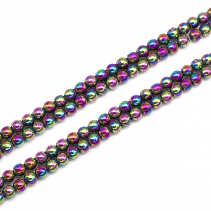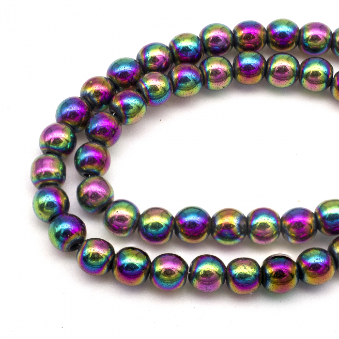 Koraliki Syntetyczny Hematyt Okrągłe Klasa A, Niemagnetyczne, na sznure, Galwanizowane. Kolor: Wielokolorowy