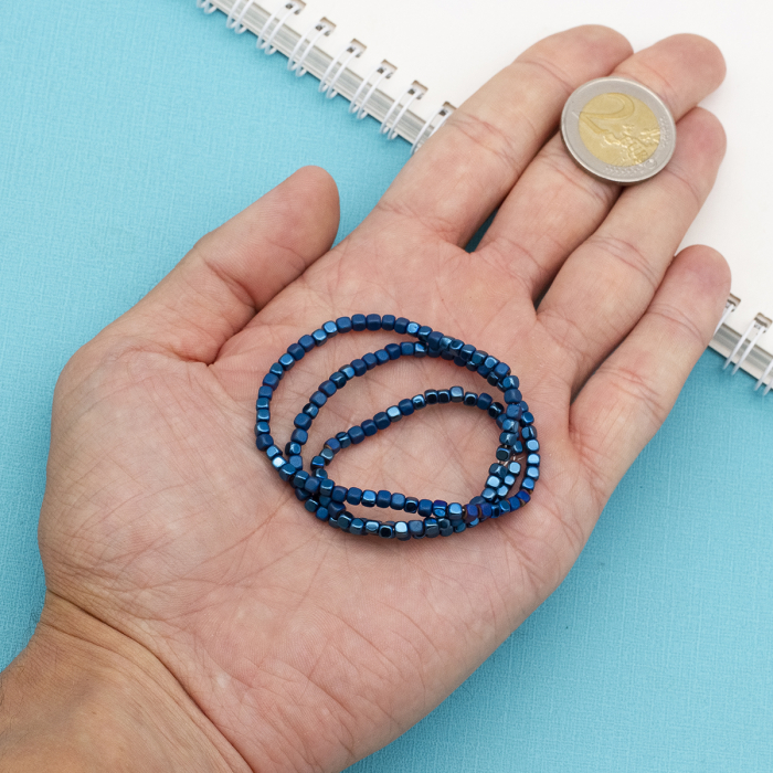 ✔Gwarancja jakości ✔Szybka dostawa ✔Wygodne zamawianie ★ Koraliki Syntetyczne Hematyt, Niemagnetyczne, Kostka, Niebieski, 3x3x3mm, około 135szt/38cm/sznur (13WB29097) w MixForm ➨ Masz czas na zakup w korzystnej cenie!