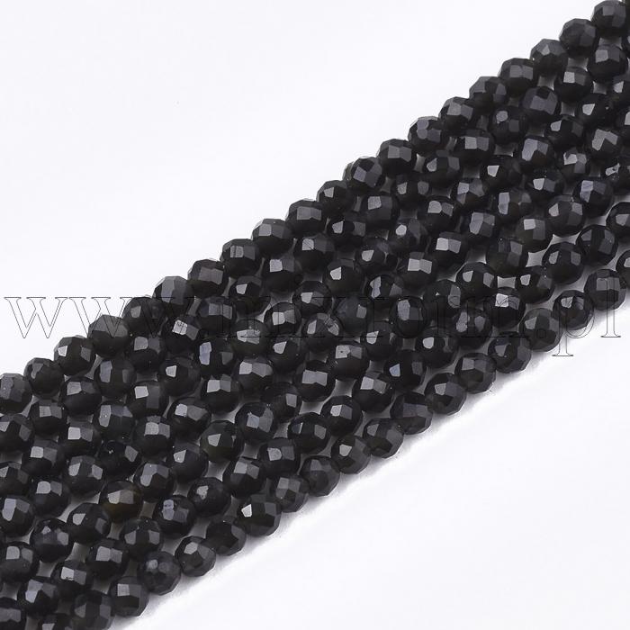 Koraliki Naturalny Kamień Czarny Obsydian Kulki Fasetowane, 3mm, około 132szt/36cm/sznur (13WB29115)Kolor: