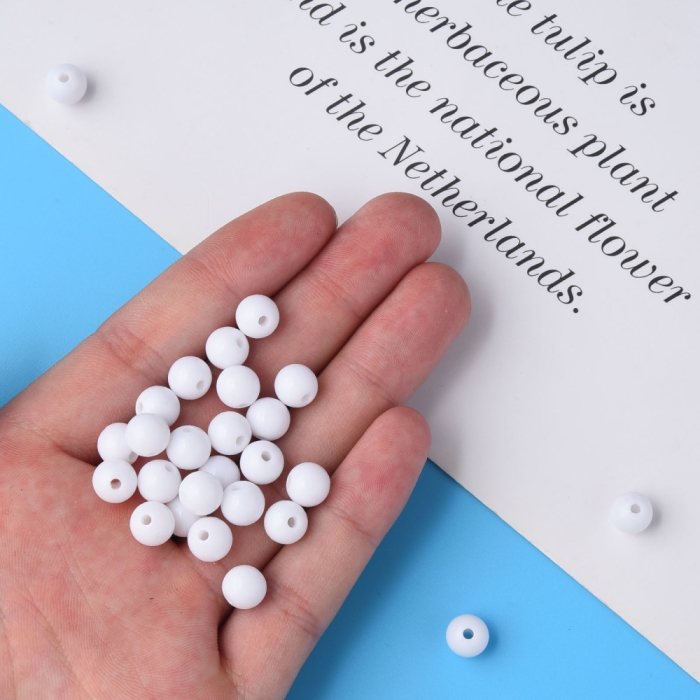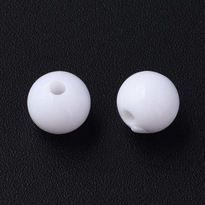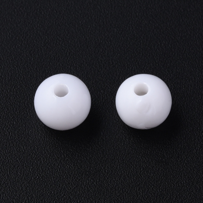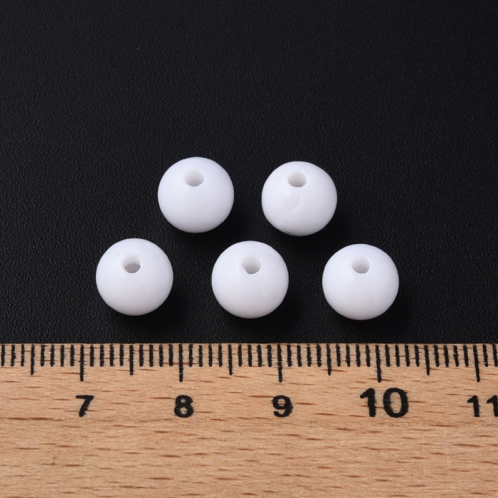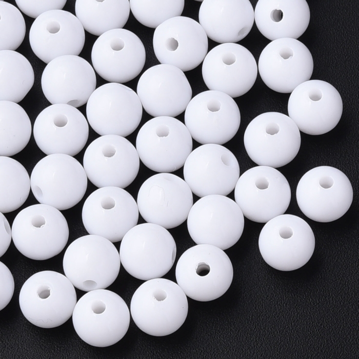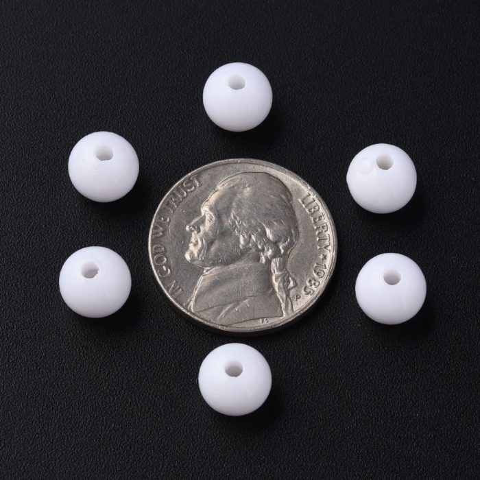 Koraliki Akrylowe Nieprzejrzyste, Okrągłe, Białe, 8x7mm, 160szt/50g (13WB29584)