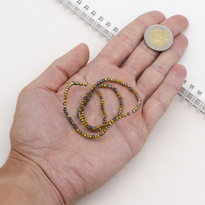 ✔Gwarancja jakości ✔Szybka dostawa ✔Wygodne zamawianie ★ Koraliki Szklo Galwanizowane, Rondel Półpowlekane, Fasetowane, 3x2mm, Złote, około 160szt/36cm/nić (13WB29659) w MixForm ➨ Masz czas na zakup w korzystnej cenie!