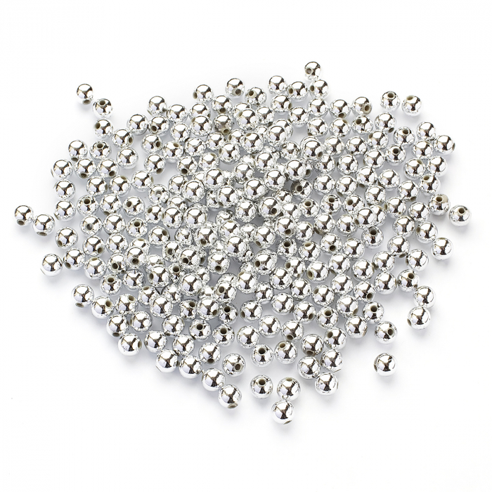 Koraliki Akrylowe z Powłoką Metaliczną, Okrągłe Kolor: Platyna