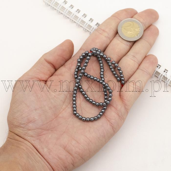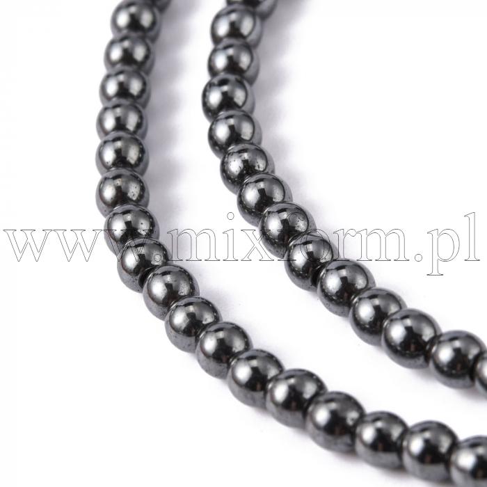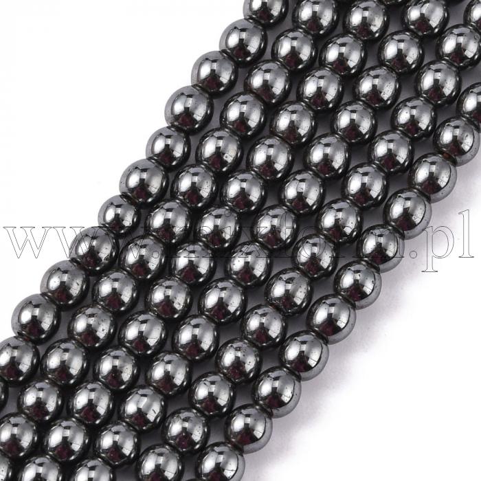 Koraliki Hematyt Niemagnetyczne, Okrągłe, Czarny, 4mm, około 100szt/40cm/nić (2WB30779)Opakowanie: