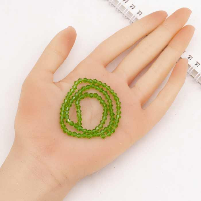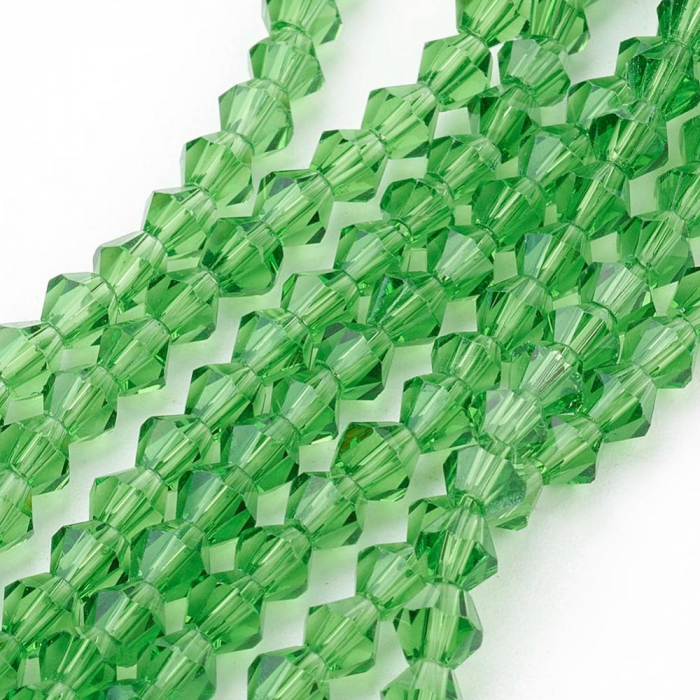 ✔Gwarancja jakości ✔Szybka dostawa ✔Wygodne zamawianie ★ Koraliki Imitacja Austriackiego Kryształu, Szklane, Bicone, Zielony Limonkowy, 4x4mm, około 80szt/30cm/nić (5WB7078) w MixForm ➨ Masz czas na zakup w korzystnej cenie!