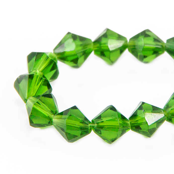Koraliki szklane imitujące austriacki kryształ są wykwintnym materiałem do tworzenia biżuterii i dekoracji. Wykonane z wysokiej jakości szkła, mają kształt bikonu i wiele faset, dzięki czemu koraliki mają jasny połysk i skutecznie załamują światło. Koraliki te to imitacja austriackiego kryształu o szlifie 5301, klasyczny wzór popularny w biżuterii i przedmiotach dekoracyjnych ze względu na wysoką symetrię i doskonałą zdolność załamania światła.