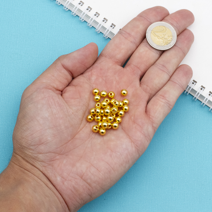 Koraliki Plastikowe ABS, Okrągłe, Pokryte Złotem,