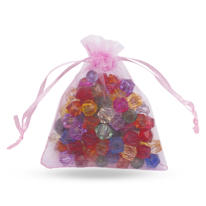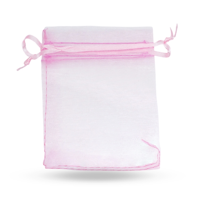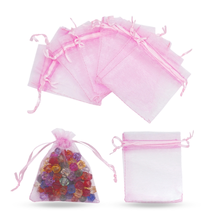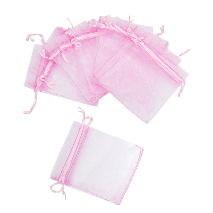 Woreczek Podarunkowy z Organzy do Rękodzieła i Biżuterii, Przezroczysty z Wiązaniami, Rozowy, 12x10cm, 10szt (13WB29715)Kolor: