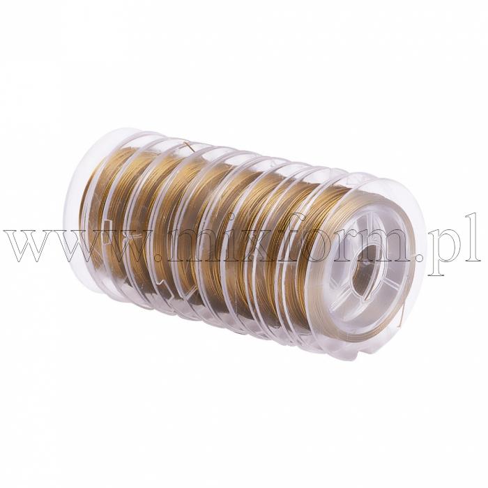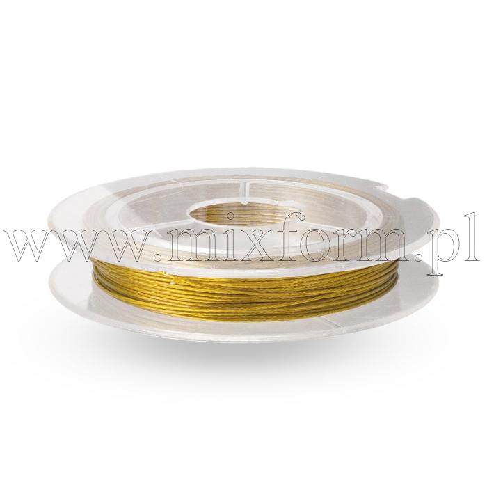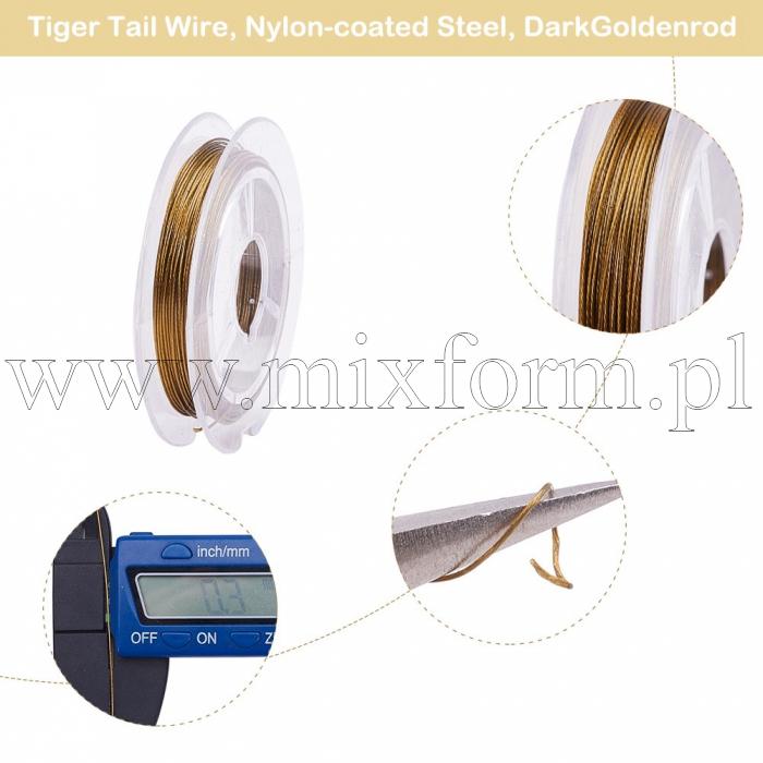 Linka Jubilerska Stalowa, do Rękodzieła i Biżuterii, Powłoka Nylonowa, Złoty, 0.38mm, około 10m/szpula (14WB5506)Opakowanie: