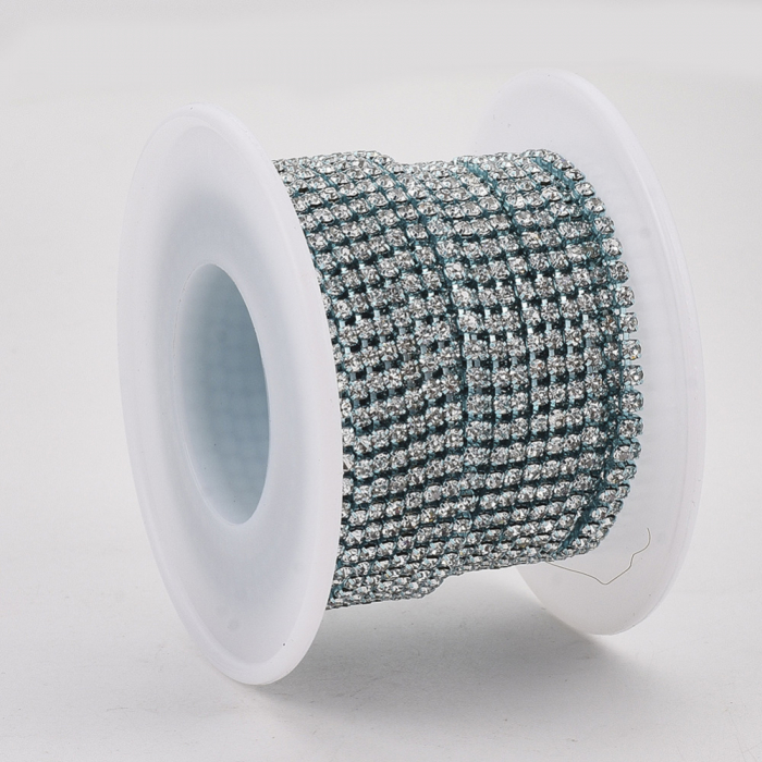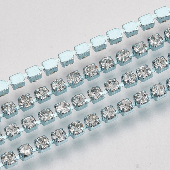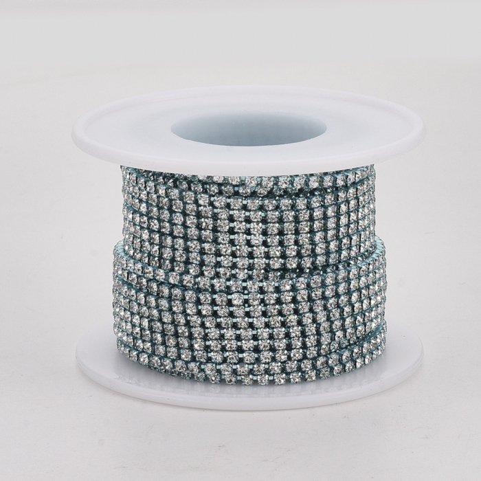 ✔Gwarancja jakości ✔Szybka dostawa ✔Wygodne zamawianie ★ Taśma Łańcuszek Ozdobny z Cyrkoniami SS6.5, Trwała Powłoka, Blady Turkus/Kryształ, 2mm, około 9m/szpula, (13WB29322) w MixForm ➨ Masz czas na zakup w korzystnej cenie!