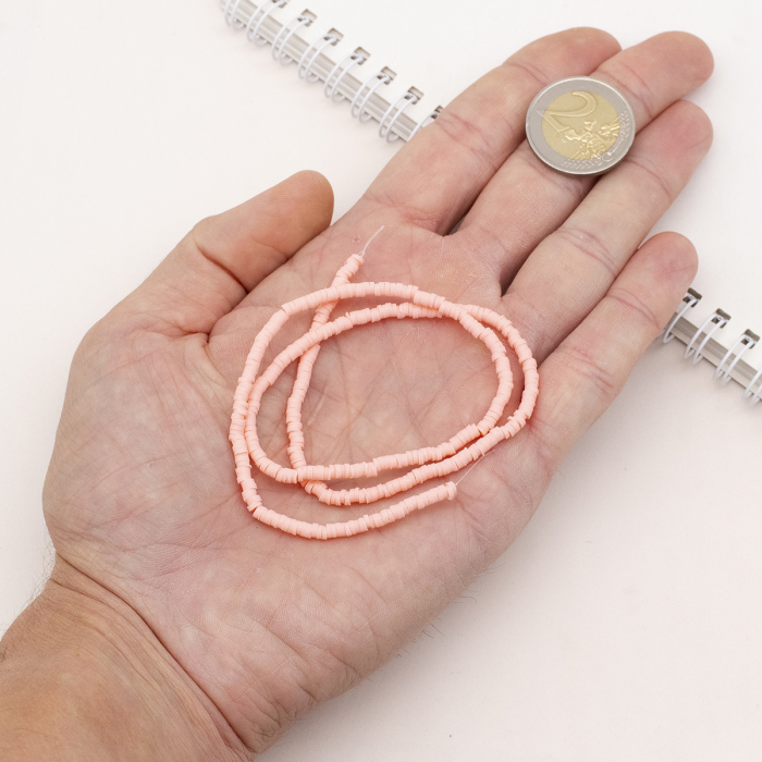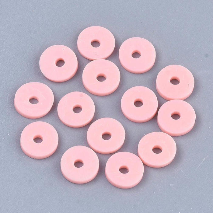 Koraliki Eko Glina Polimerowa, Handmade, Heishi, Dysk, Różowy, 3x1mm, Otwór 1mm, około 375szt/40cm/nić (13WB29916)