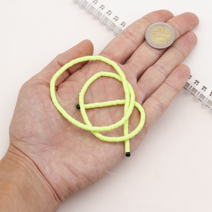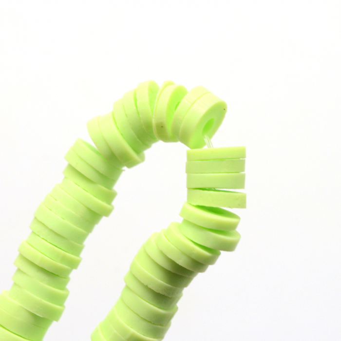 Koraliki Eko Glina Polimerowa, Handmade, Heishi, Dysk, Jasnozielone, 3x1mm, Otwór 1mm, około 375szt/40cm/nić (13WB29920)