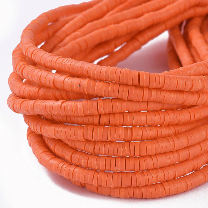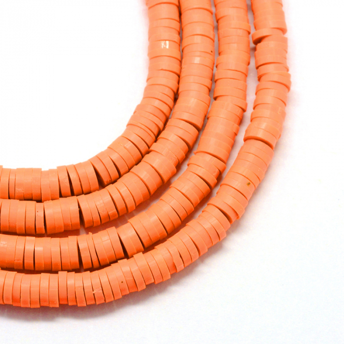 Koraliki Eko Glina Polimerowa, Handmade, Heishi, Dysk, Jasno Koralowe, 4x1mm, Otwór 1mm, ok. 375szt/40cm/nić (13WB29938)