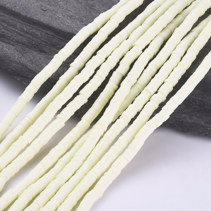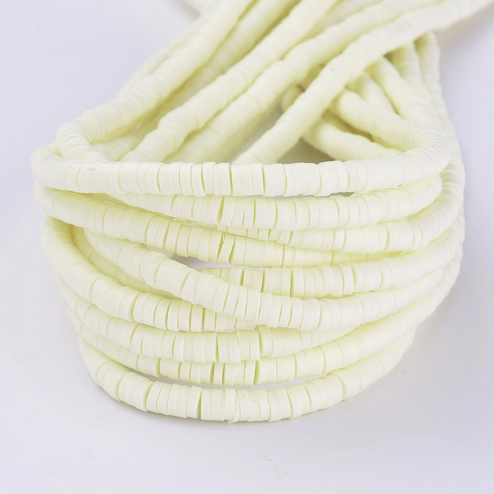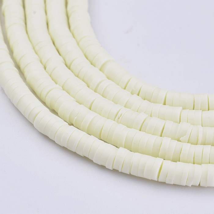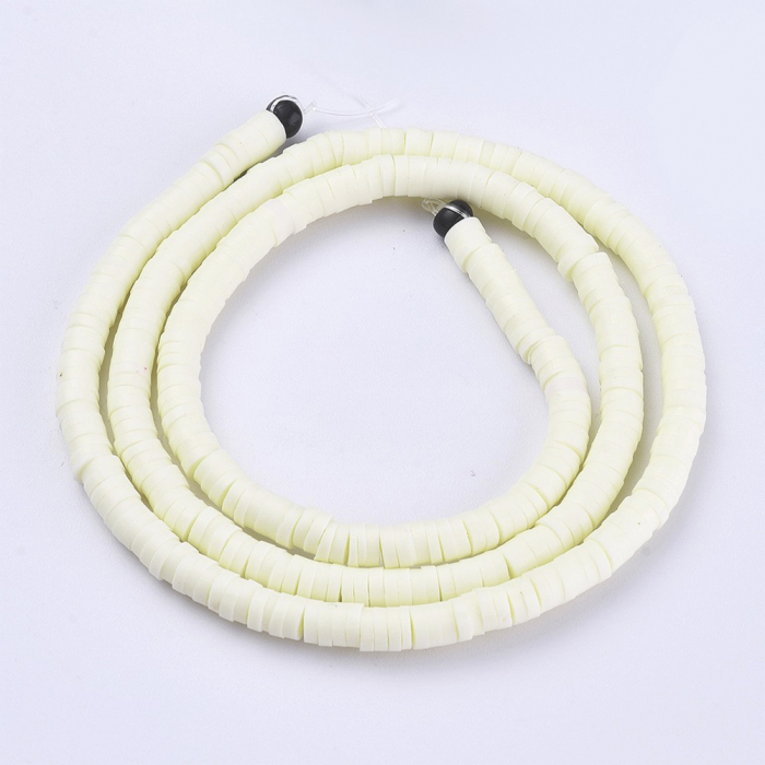Koraliki Eko Glina Polimerowa, Handmade, Heishi, Dysk, Jasnożółty, 4x1mm, Otwór 1mm, około 375szt/40cm/nić (13WB29941)