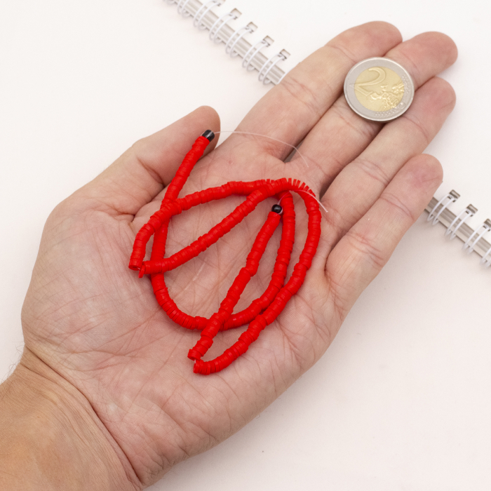 Koraliki Eko Glina Polimerowa, Handmade, Heishi, Dysk, Czerwony, 4x1mm, Otwór 1mm, około 375szt/40cm/nić (13WB29943)