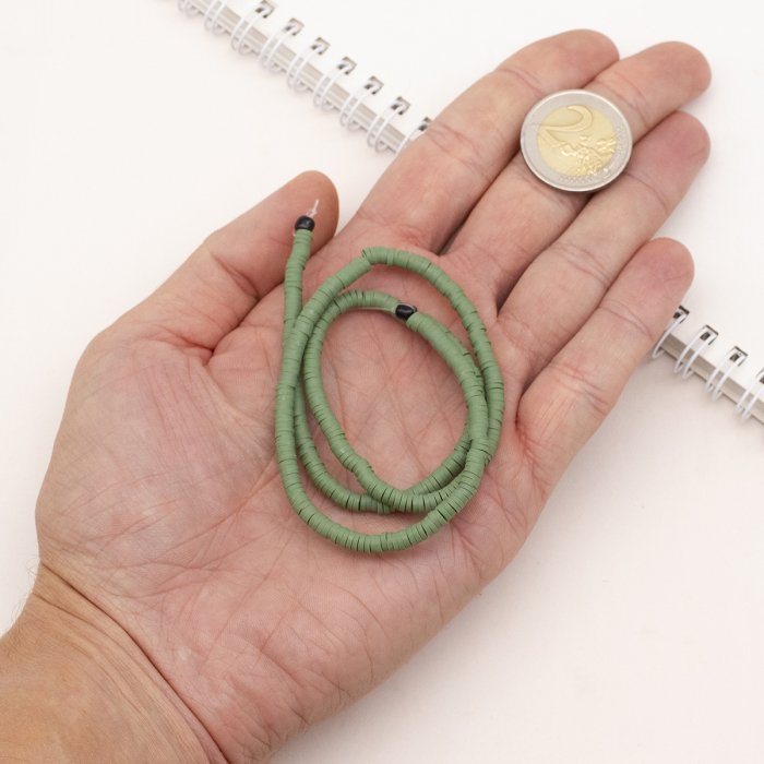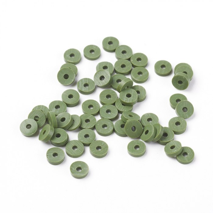 Koraliki Eko Glina Polimerowa, Handmade, Heishi, Dysk, Oliwkowe, 4x1mm, Otwór 1mm, około 375szt/40cm/nić (13WB29949)