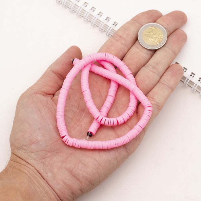 Koraliki Eko Glina Polimerowa, Handmade, Heishi, Dysk, Flamingo, 6x1mm, Otwór 1mm, około 345szt/40cm/nić (13WB29981)
