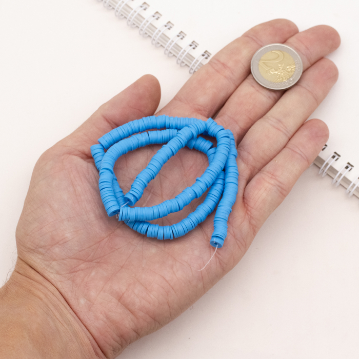 Koraliki Eko Glina Polimerowa, Handmade, Heishi, Dysk, Niebieskie, 6x1mm, Otwór 1mm, około 345szt/40cm/nić (13WB29987)
