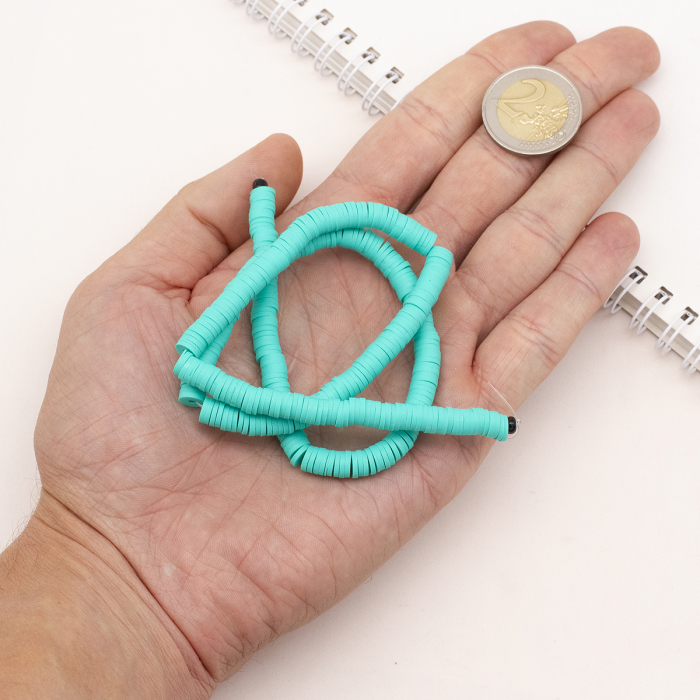 Koraliki Eko Glina Polimerowa, Handmade, Heishi, Dysk, Turkusowe, 6x1mm, Otwór 1mm, około 345szt/40cm/nić (13WB29988)