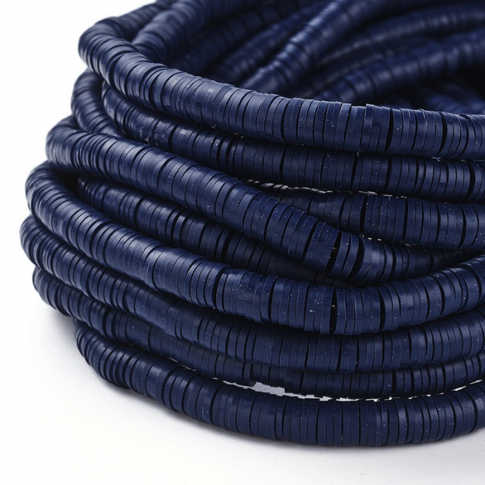 Koraliki Eko Glina Polimerowa, Handmade, Heishi, Dysk, Ciemnoniebieskie, 6x1mm, około 345szt/40cm/nić (13WB29989)
