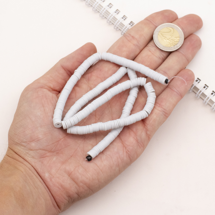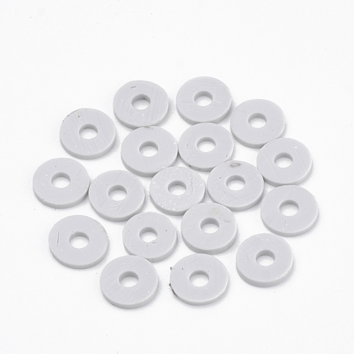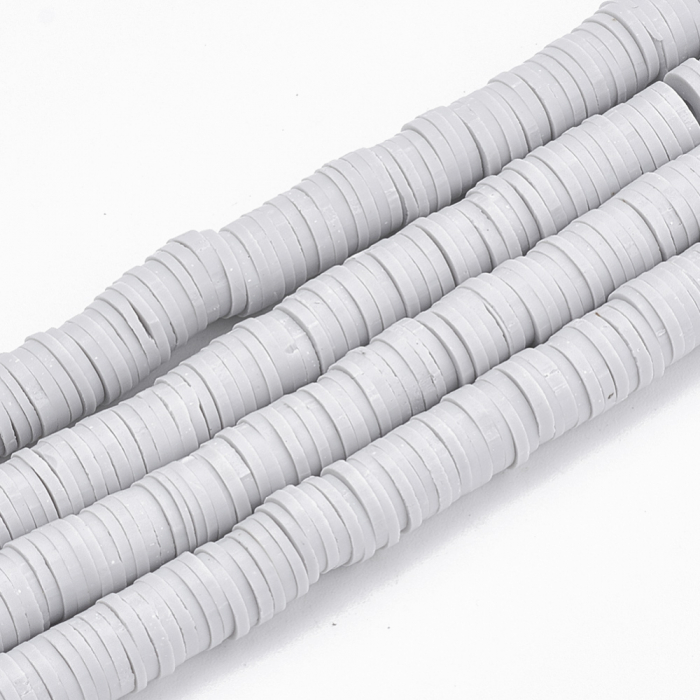 Koraliki Eko Glina Polimerowa, Handmade, Heishi, Dysk, Jasnoszare, 6x1mm, Otwór 1mm, około 345szt/40cm/nić (13WB29998)