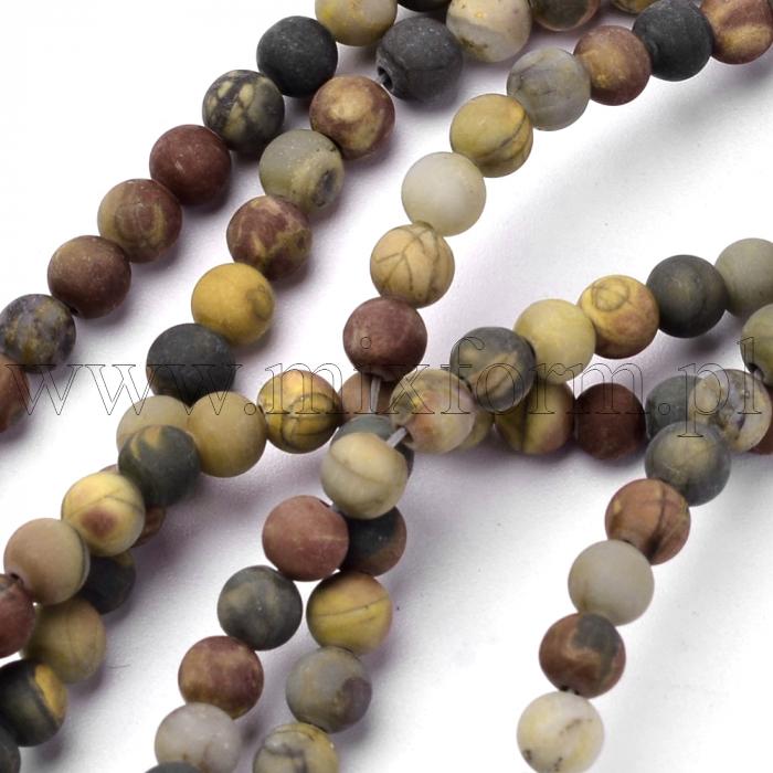 Koraliki Naturalny Jaspis Picasso, Niebarwione, Okrągłe, Matowy, 4mm, około 82szt/37cm/nić (13WB30192)Kolor: