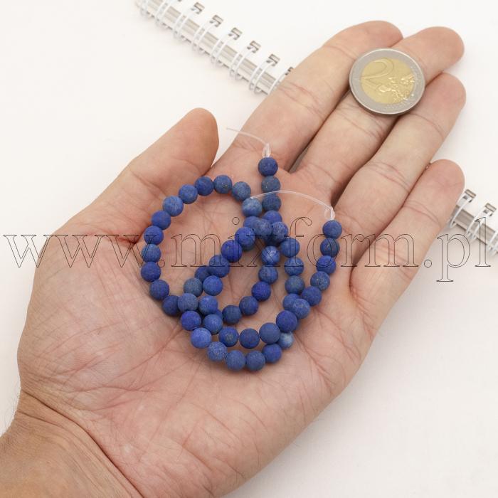 Koraliki z naturalnego Lapis Lazuli, okrągłe, matowe, na nitkach, barwione Kraj pochodzenia kamienia: Afganistan