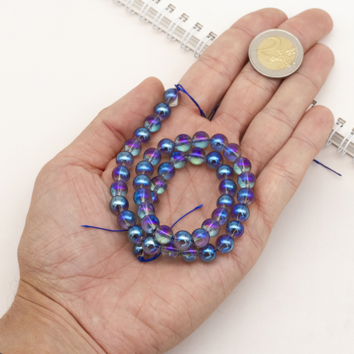 Koraliki Naturalny Kryształ Górski, AB Powłoka, Galwanicznie, Okrągłe, Tęczowy, na nici. Kolor: Niebieskie, Kraj pochodzenia kamienia to Brazylia. Rozmiar: średnica 8mm, otwór 0,8mm około 45szt / 38cm / nić ●Te koraliki z powłoką benzynową lub tęczową mają charakterystyczny kolorowy połysk na powierzchni. Bardzo często takie koraliki są oznaczane jako "AB" (od łacińskiego Aurora Borealis, co oznacza " aurora polarna"). Powłoka w kolorze AB (Aurora Borealis) to specjalna wielowarstwowa powłoka, która tworzy mieniący się i opalizujący efekt na powierzchni koralików, które mienią się w słońcu wszystkimi kolorami tęczy. ●Wzmocnienie energii: Kryształ ma zdolność wzmacniania i wzmacniania energii, co czyni go potężnym narzędziem do ustalania intencji i manifestacji. Może również wzmacniać energię innych kryształów, gdy są używane razem, co czyni go popularnym wyborem dla kryształowych siatek i praktyk uzdrawiania. ●Klarowność i skupienie: Uważa się, że kryształ pomaga oczyścić umysł z mentalnego zmętnienia i zwiększyć skupienie, co czyni go doskonałym kamieniem do medytacji i duchowych poszukiwań. Może pomóc uspokoić umysł, zwiększyć jasność w podejmowaniu decyzji i połączyć się z wyższymi poziomami świadomości. ●W rękodziele koraliki te mogą być używane do tworzenia naszyjników, bransoletek, kolczyków i tworzenia unikalnych ozdób, które podkreślą Twój styl.