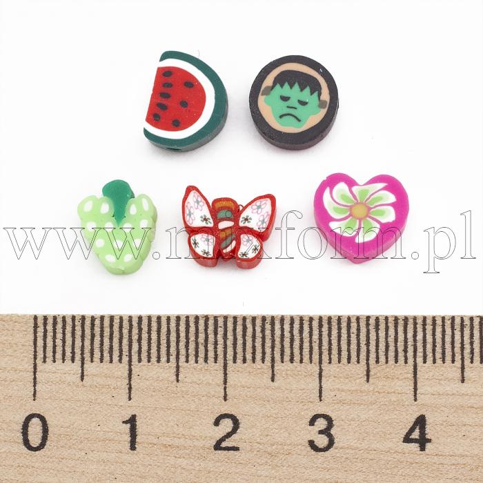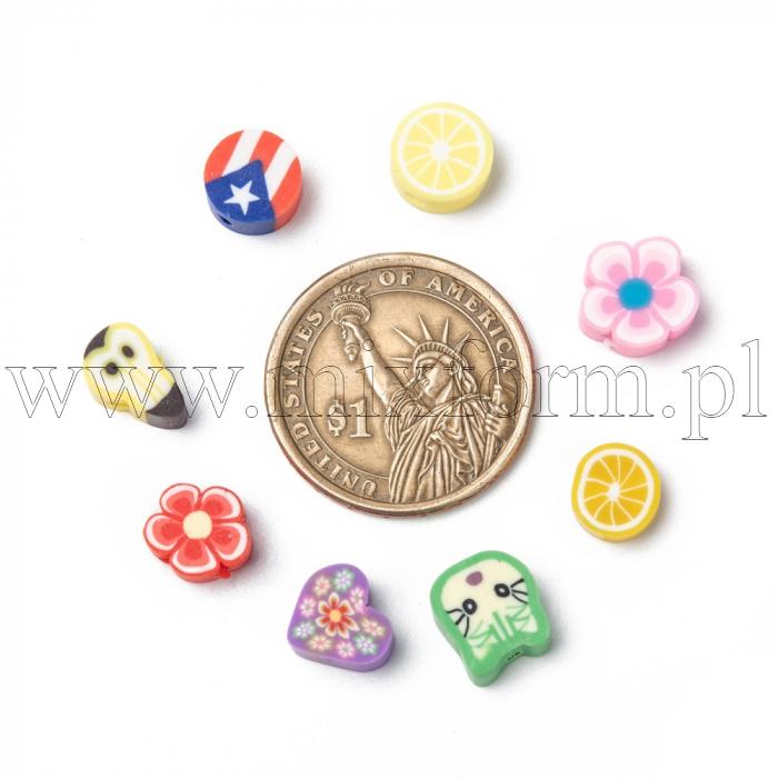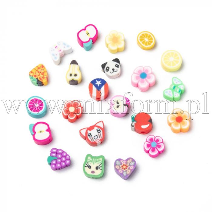 Koraliki wykonane z gliny polimerowej, ręcznie robione, w różnych kształtach i kolorach. Każdy koralik jest unikalny, co sprawia, że gotowe projekty nabierają oryginalnego charakteru. Ich lekkość i trwałość czynią je idealnym materiałem do biżuterii oraz dekoracyjnych projektów handmade.