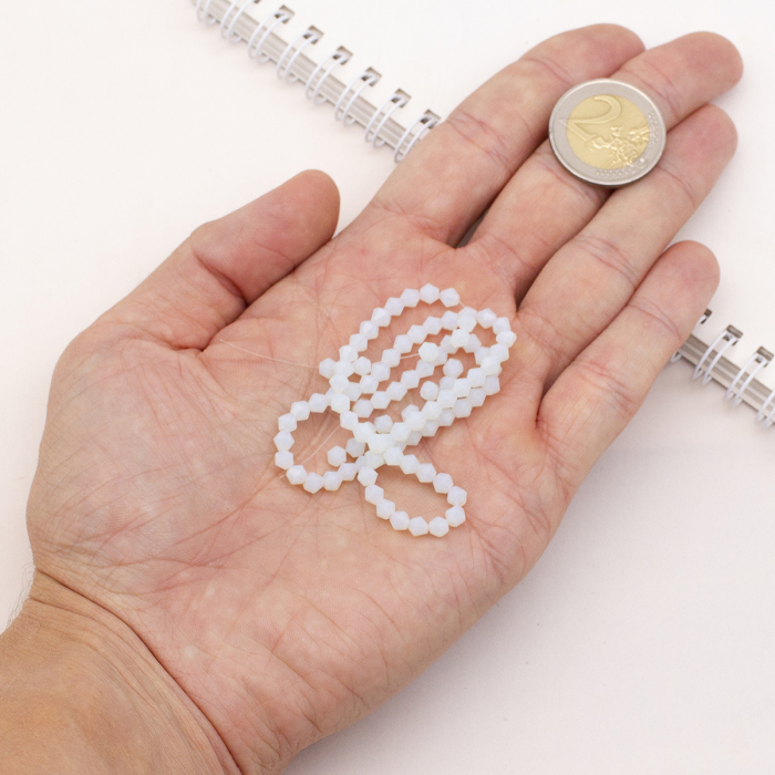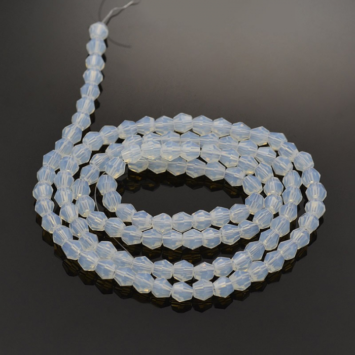 Koraliki Syntetyczne Opalit, Bicone, Fasetowane, Biały Duch, 4x4mm, Otwór. 1mm, około 90szt/35cm/nić, (13WB30268)
