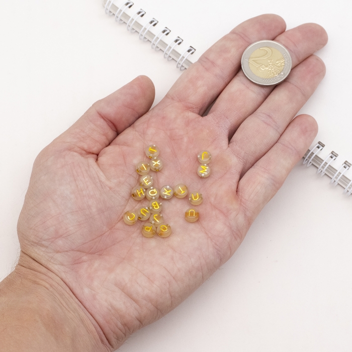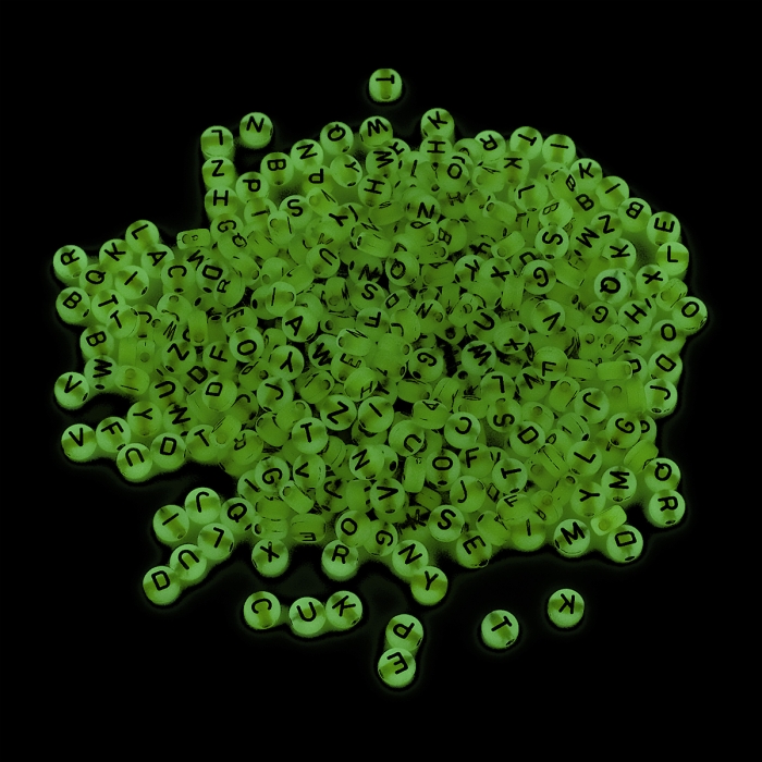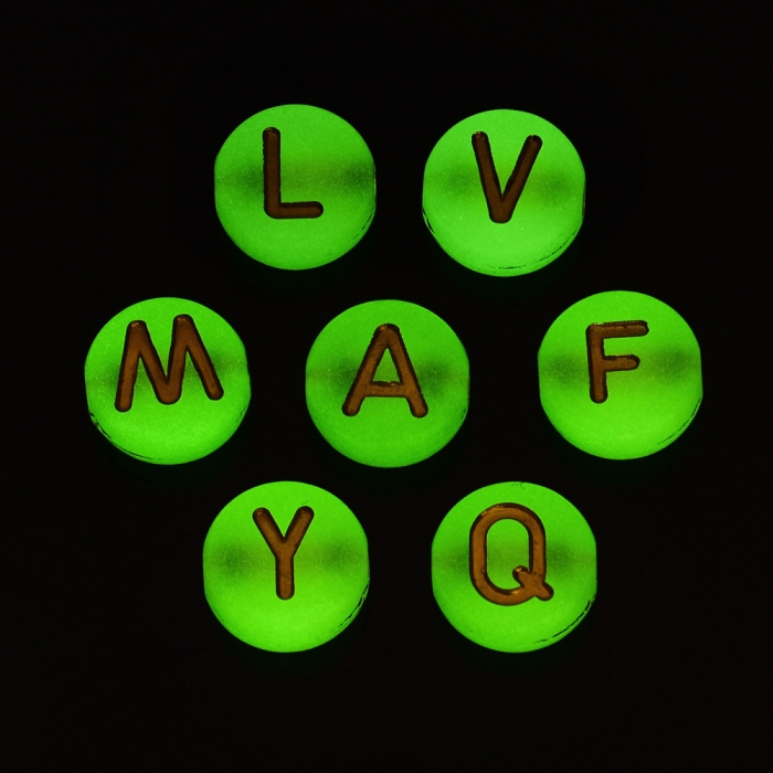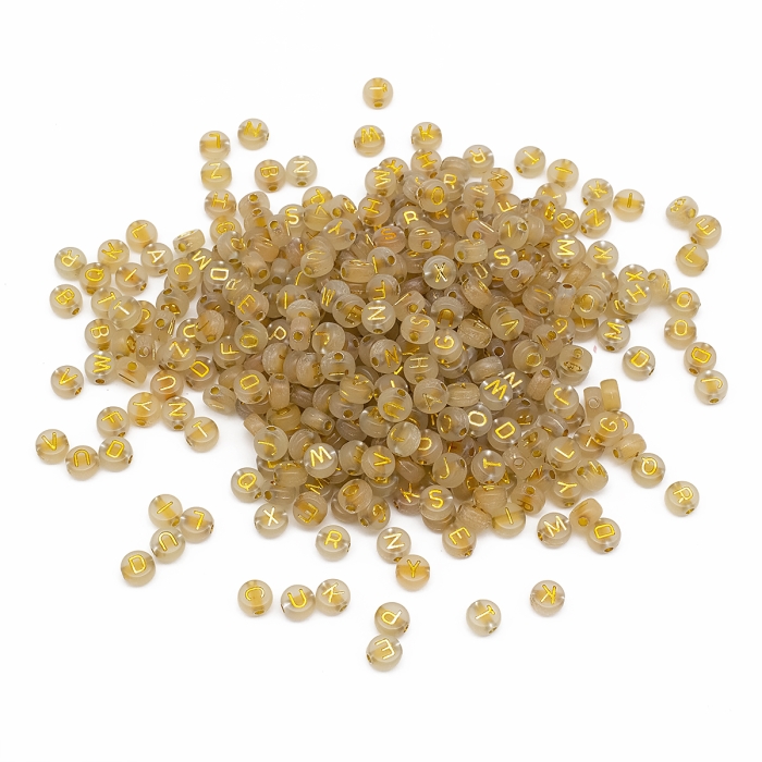 Koraliki Akrylowe, Fluorescencyjne Świecące w Ciemności, Litery Mix, Złoty, 7x3.5mm, okolo 50g~350szt (13WB30300)Kolor: