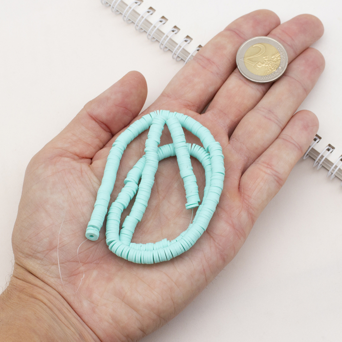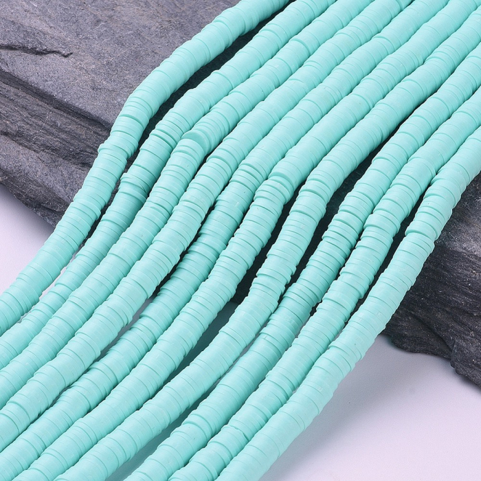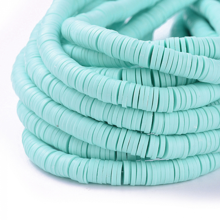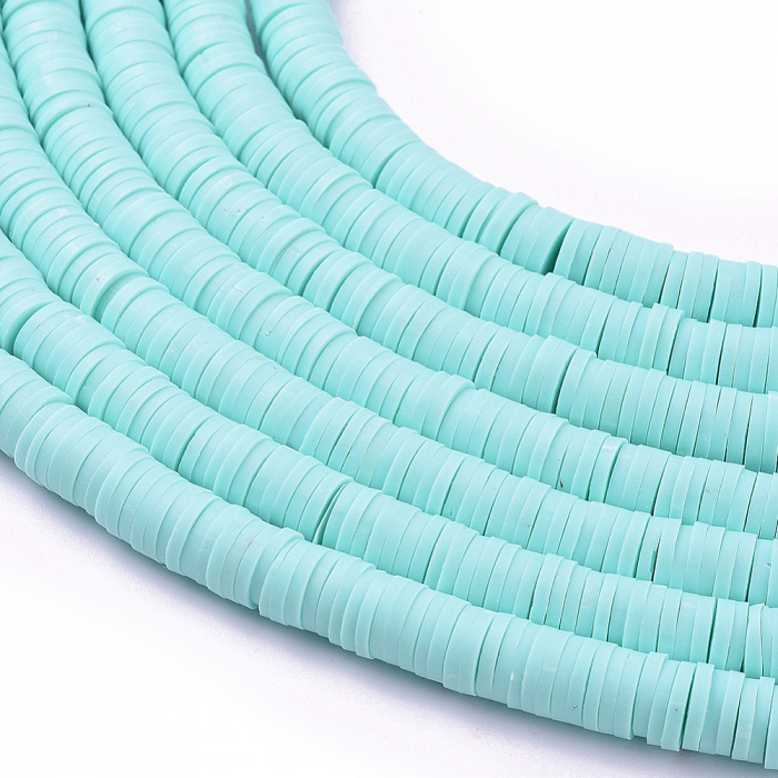 Koraliki Eko Glina Polimerowa, Handmade, Heishi, Dysk, Akwamaryn, 6x1mm, Otwór 1mm, około 345szt/40cm/nić (13WB30338)