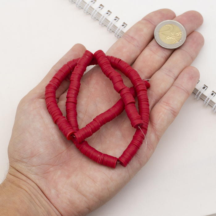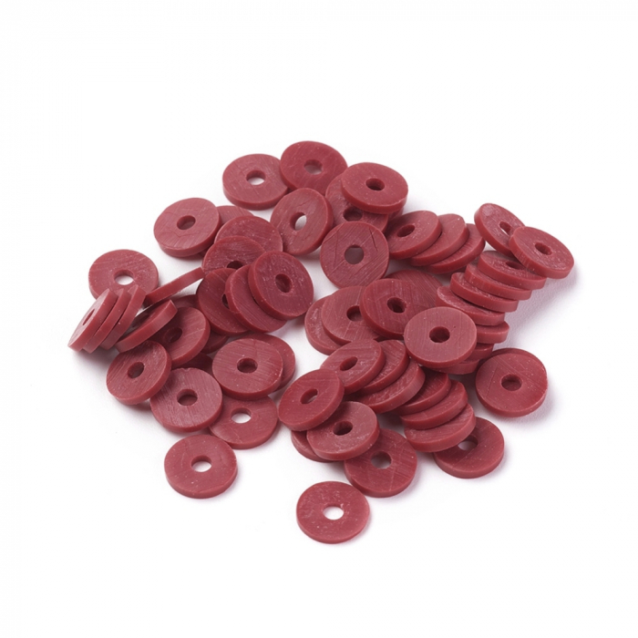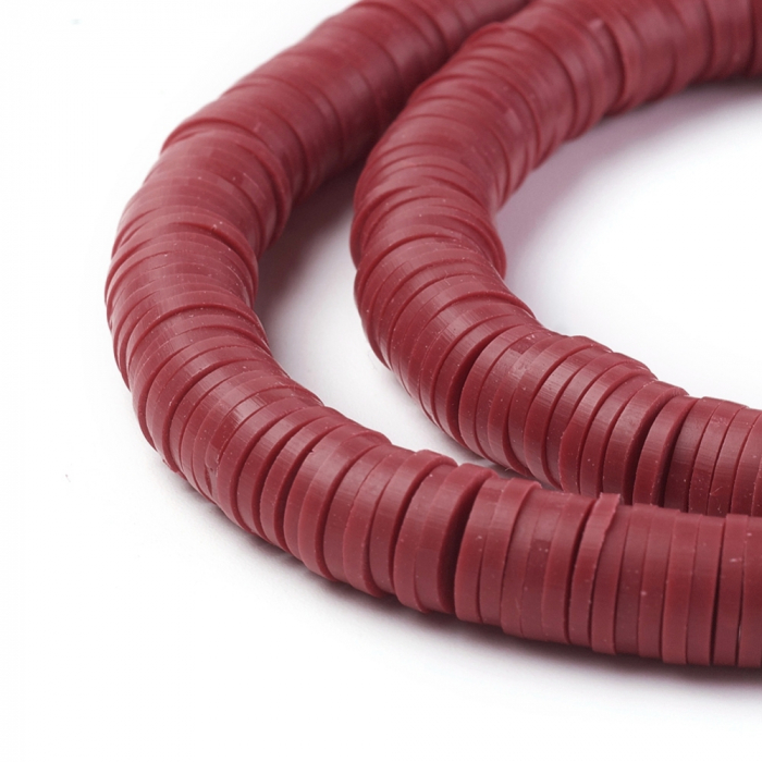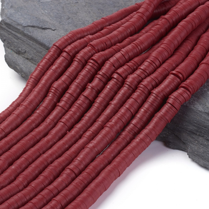 Koraliki Eko Glina Polimerowa, Handmade, Heishi, Dysk, Ciemnoczerwony, 8x0.5~1mm, około 360szt/40cm/nić (13WB30340)