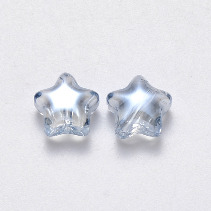 Koraliki Szklane, Gwiazdy, Przezroczyste, Barwione, Perłowe, Jasnoniebieski, 8x8.5x4mm, Otwór 1mm, 50szt (13WB30603)