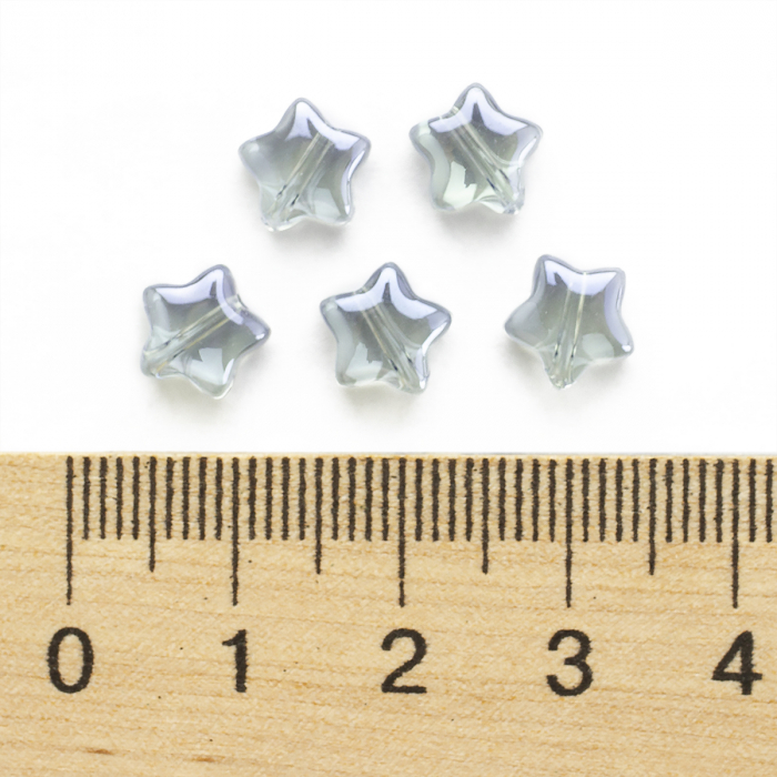 Koraliki Szklane Gwiazdy, Przezroczyste, Malowane Sprayem, Perłowe
