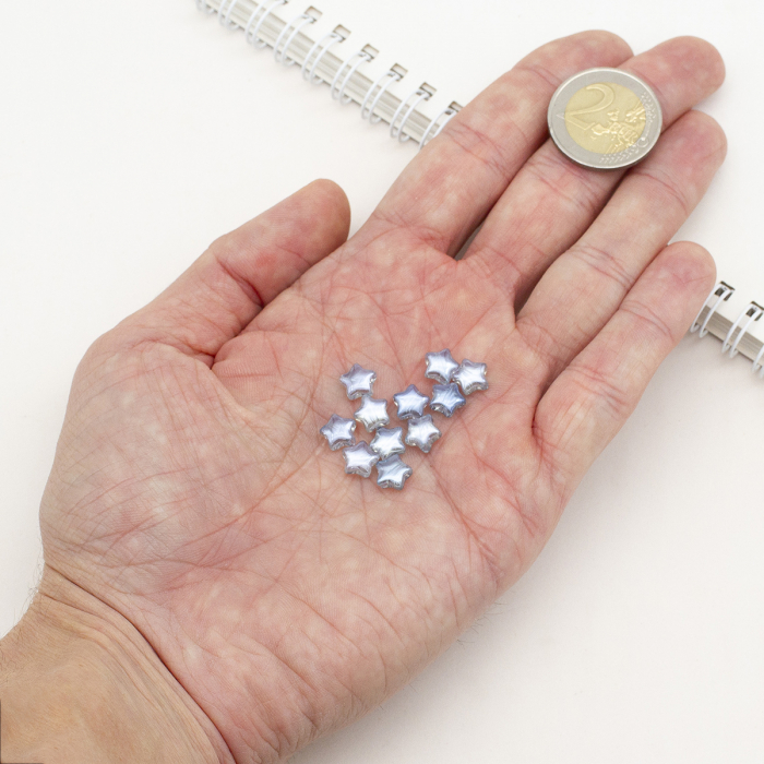 Szklane koraliki Gwiazdy, przezroczyste i kolorowe z perłową powłoką, to biżuteria o wyszukanym designie. Ich kształt gwiazdy dodaje wyjątkowości, a perłowa powłoka tworzy delikatny i elegancki wygląd. Koraliki te nadają się do różnych rodzajów biżuterii, w tym bransoletek, naszyjników i kolczyków. Kolory mogą się nieznacznie różnić w zależności od ustawień monitora i warunków oświetleniowych.