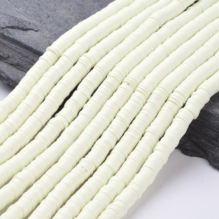 Koraliki Ekologiczna Glina Polimerowa, Handmade, Heishi, Jasnożółte, 8x0.5-1mm, około 370szt/43cm/nic (13WB30699)