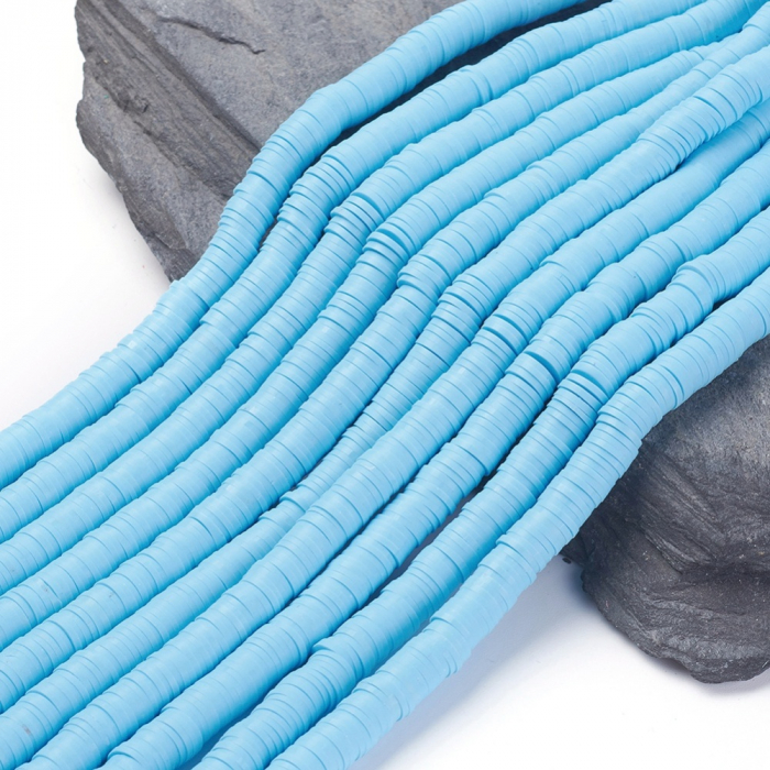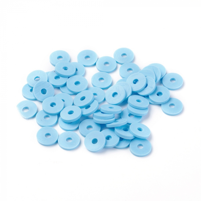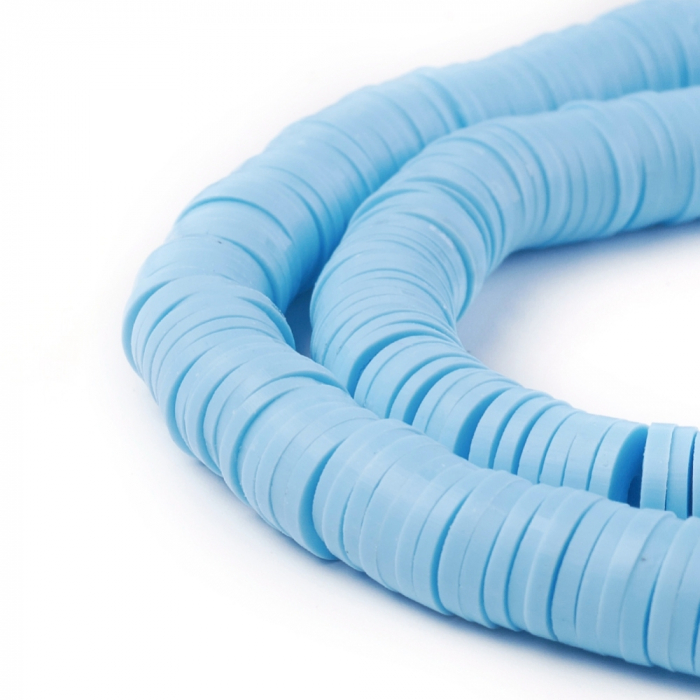 Koraliki Ekologiczna Glina Polimerowa, Handmade, Heishi, Jasnoniebieskie, 8x0.5-1mm, około 370szt/43cm/nic (13WB30704)