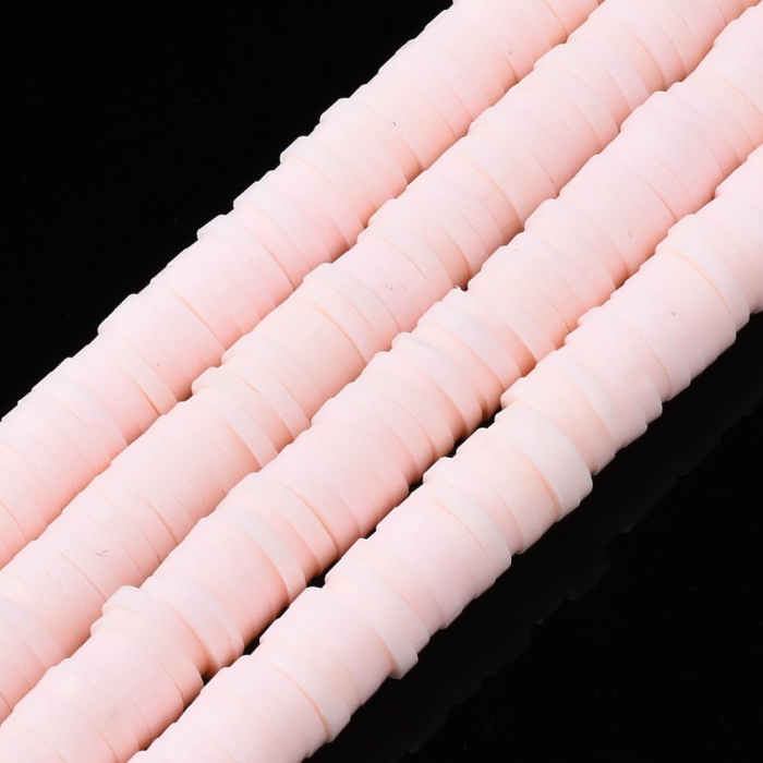 Koraliki Ekologiczna Glina Polimerowa, Handmade, Heishi, Różowy, 8x0.5-1mm, około 370szt/43cm/nic (13WB30705)