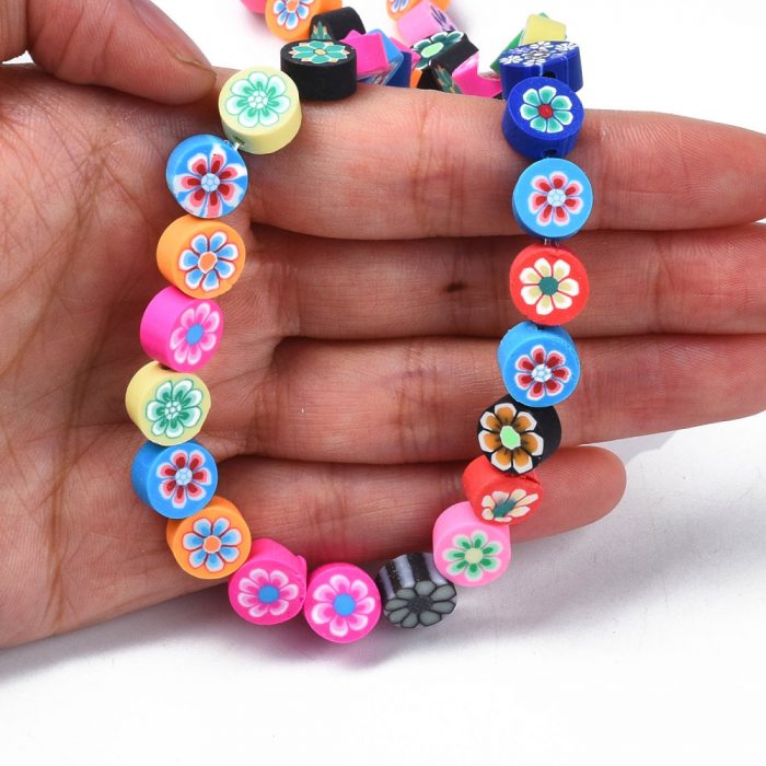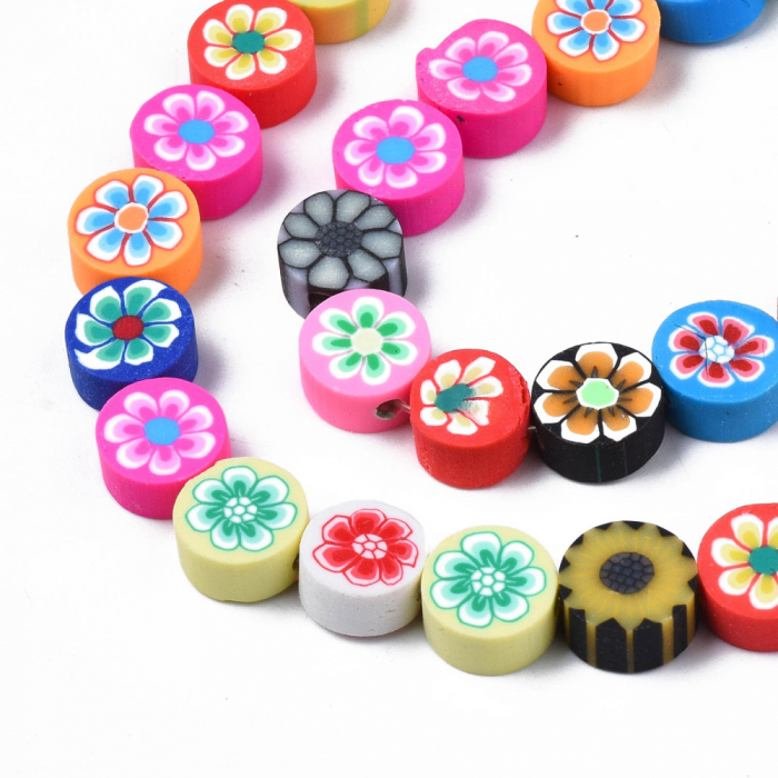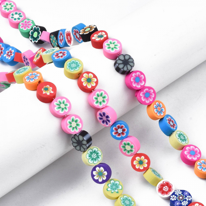 Koraliki Glina Polimerowa, Handmade, Okrągłe Płaskie, 9-10x4-5mm, Kolor: Mix, około 38szt/36cm/nić (13WB30727)