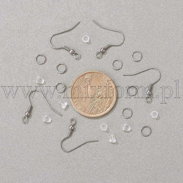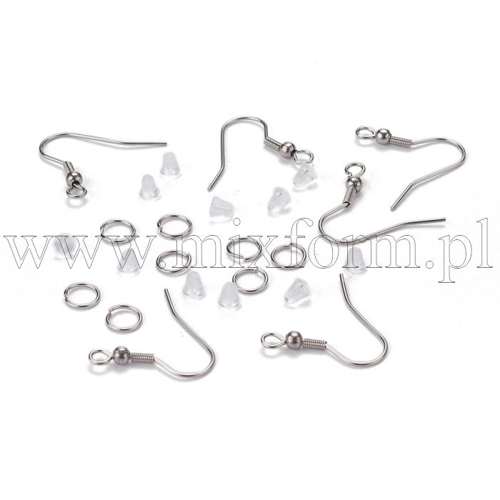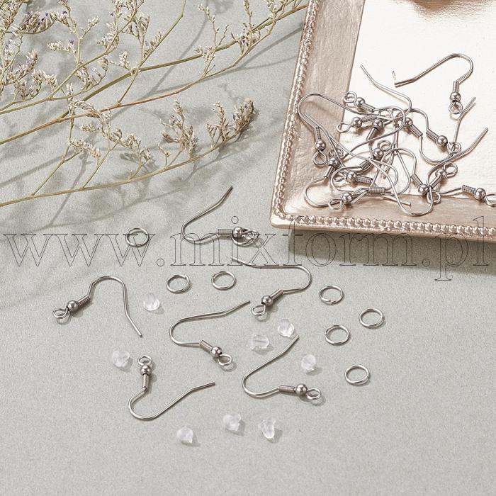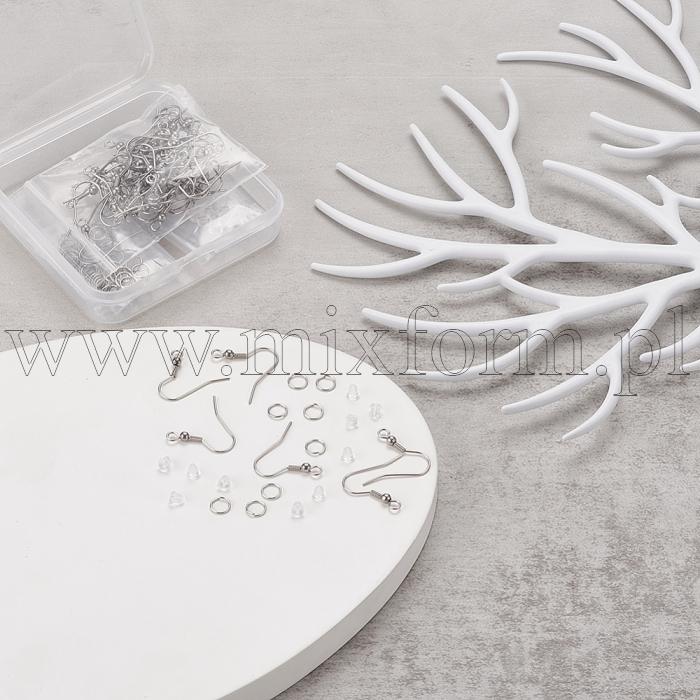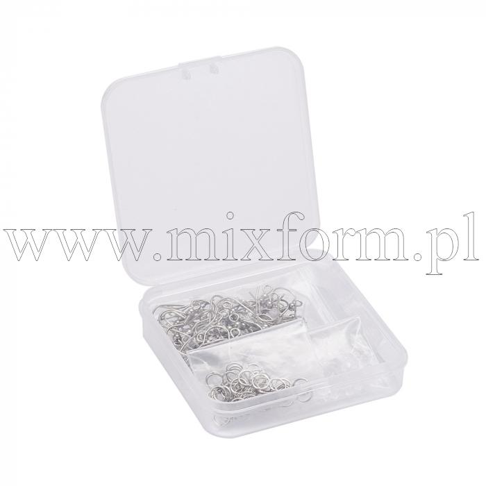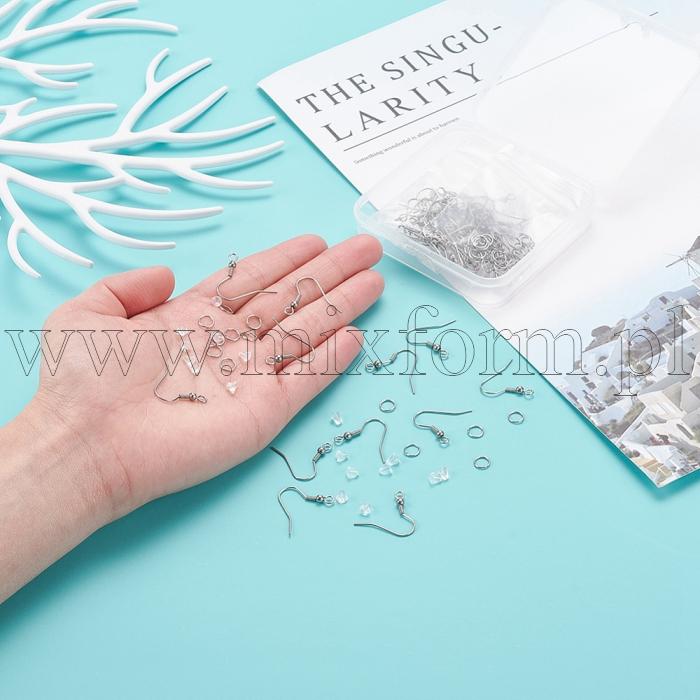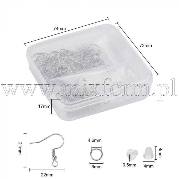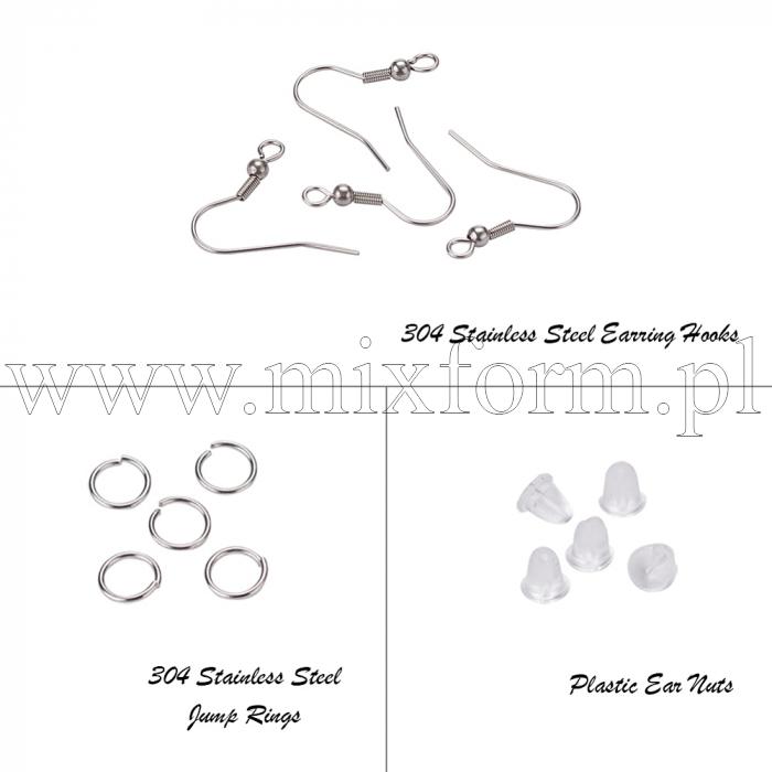 Zestaw Elementów do Kolczyków, Stal Nierdzewna, 7.4x7.2x1.7cm, Otwor 2mm, 180szt/zestaw (13WB29844)Kolor: