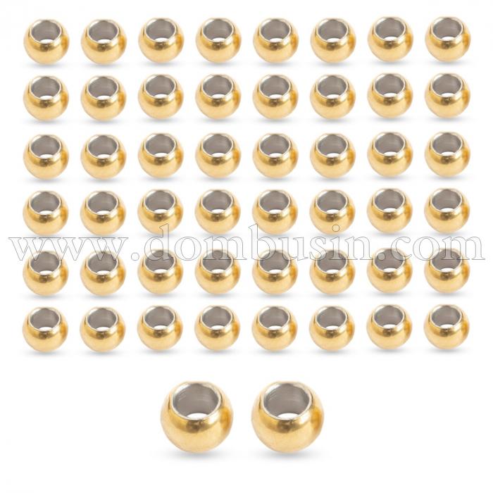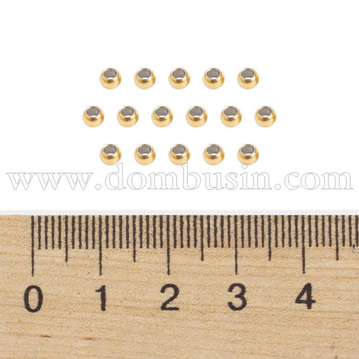 Koraliki Dystansowe, Okrągłe Stal Nierdzewna, Próżniowa Powłoka, Złote, 3x2mm, Otwór 1.5mm, 50 szt (13WB30828)